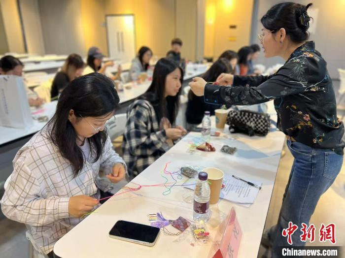 “找個礦泉水瓶固定好繩結、交錯編織五彩繩結……這手藝是我媽媽教我的,你們學會后也可以傳承。”青創學院總經理徐錦萍手把手教港澳臺大學生用五彩繩編制蛋兜、用香料制作香囊。